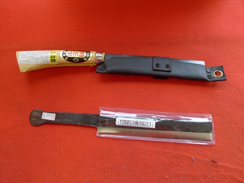 柄付き竹割り鉈 全長30㎝ 刃渡り16.5㎝ 税込み価格4.800円 下 トモ柄竹割り鉈 税込み価格5.800円 |